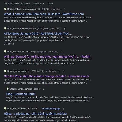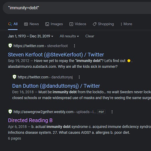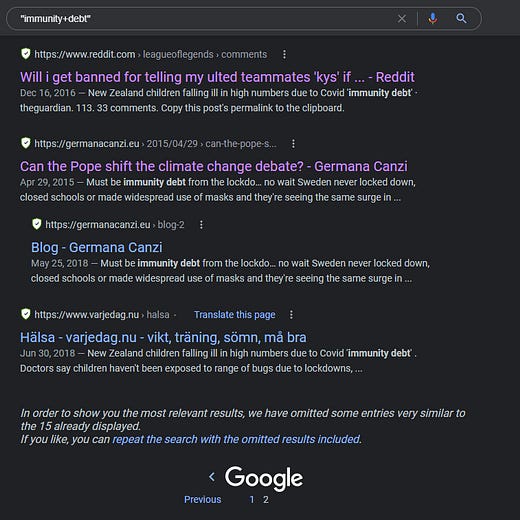 This thread comes with the evidence of a thorough search for use of the term immunity debt. Full details of searches are provided for proof if you read the full thread, I’ve cut this down to the narrative.