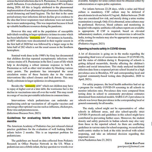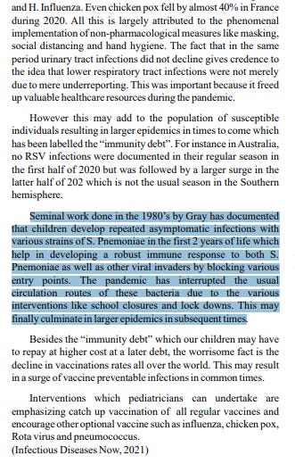 Next in June there was a paper (published in September) from Rabia Agha a paediatrician in Brooklyn, while not using the term immunity debt, this is one of the papers quoted by other papers that came later.