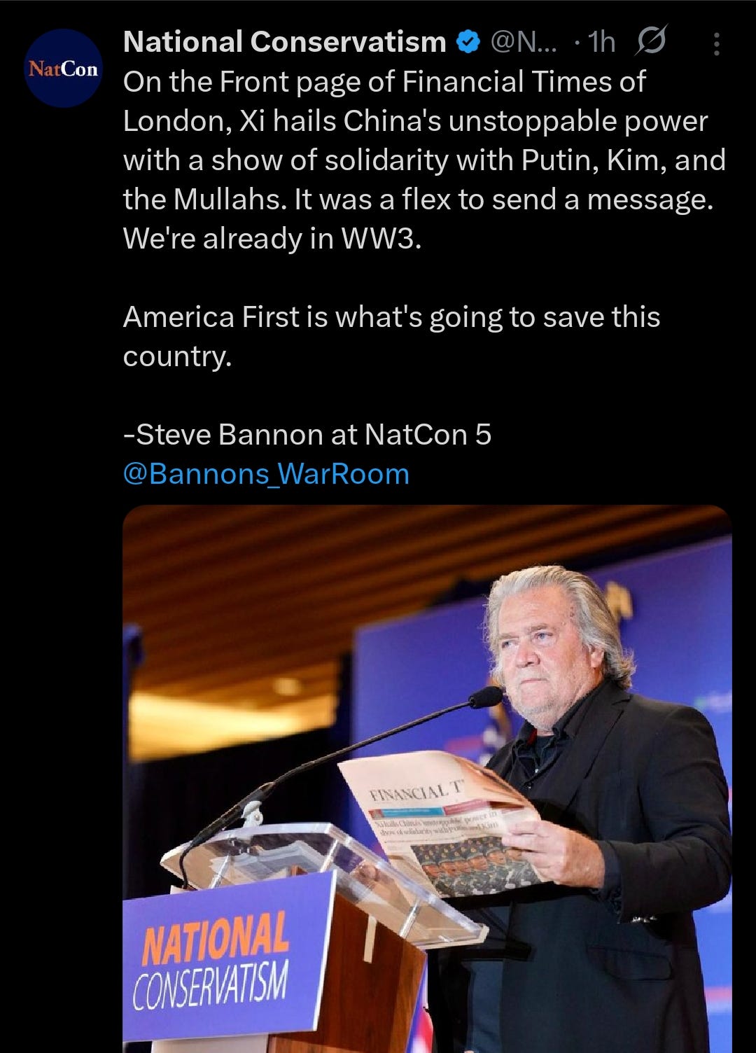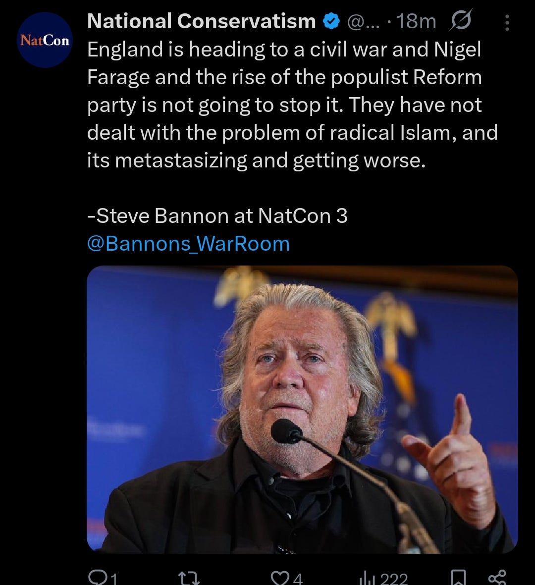 Bannon was another speaker who decided to attack England/UK, there is a concerted effort to portray the UK as an authoritarian failed state. This is to create the impression that Trump’s extreme policies are essential to save the US to prevent it becoming like a European country which they claim is being taken over by Muslims.