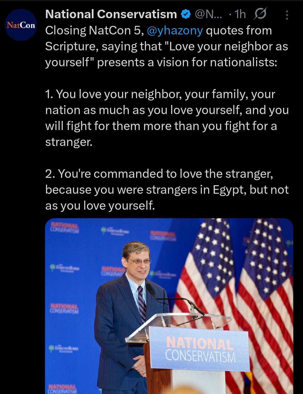 Hazony closes NatCon with his nationalist take on the Torah's teachings of love thy neighbor.