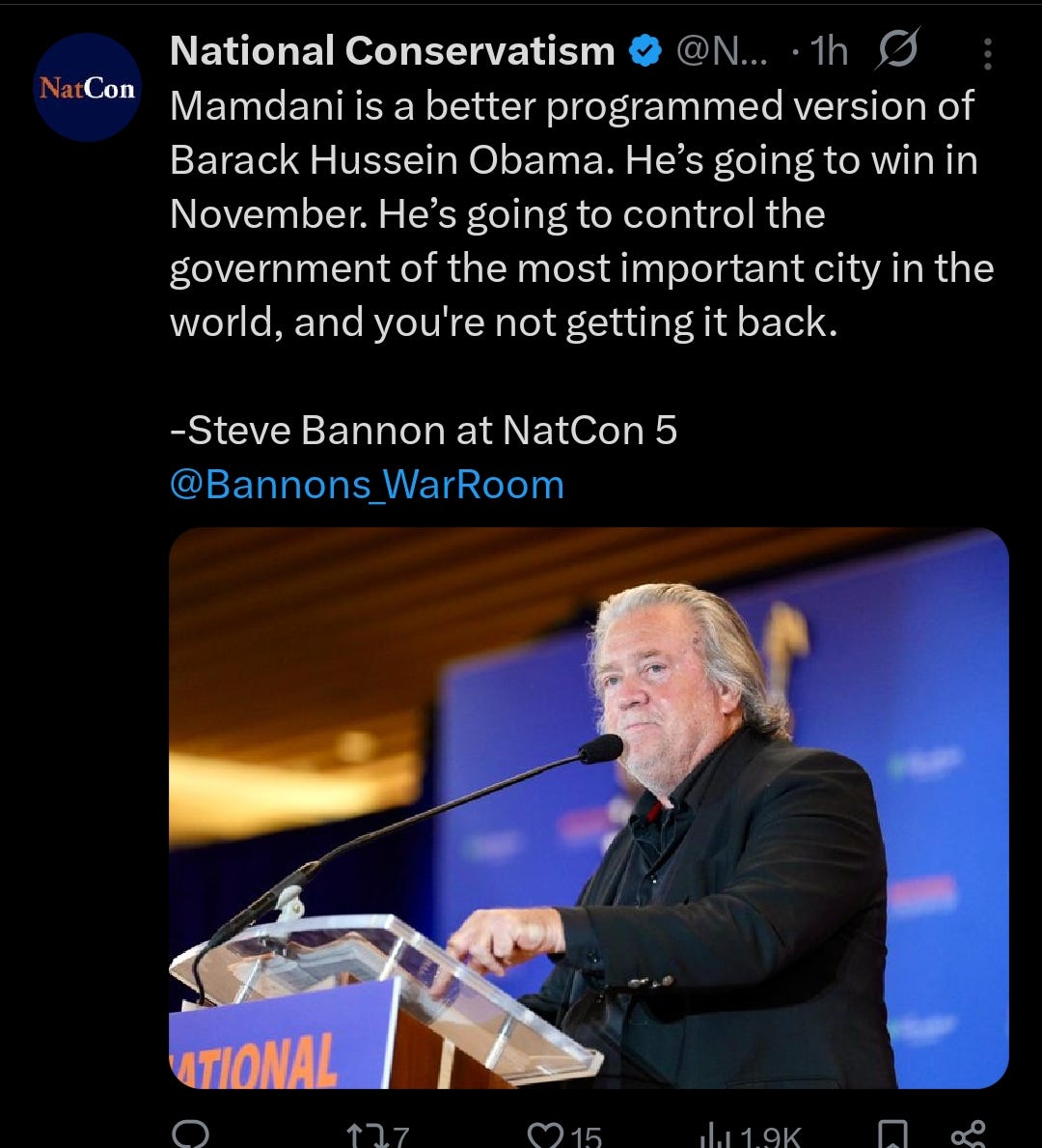 Bannon targetted Mamdani, does he see him as a threat or is it just an opportunity to whip up fear of Muslims?